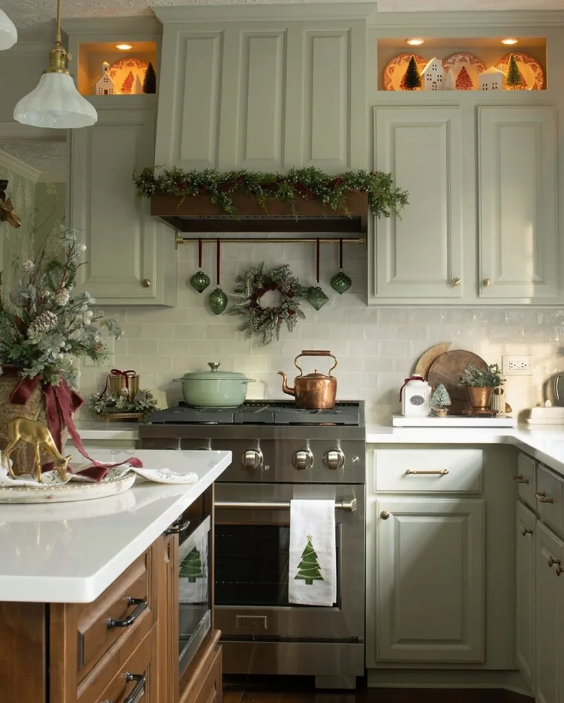 24. Soft Green Holiday Kitchen Charm