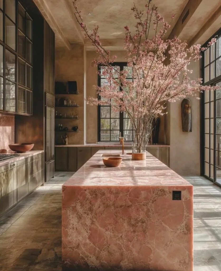 10. Statement Pink Onyx Island with Sculptural Elegance