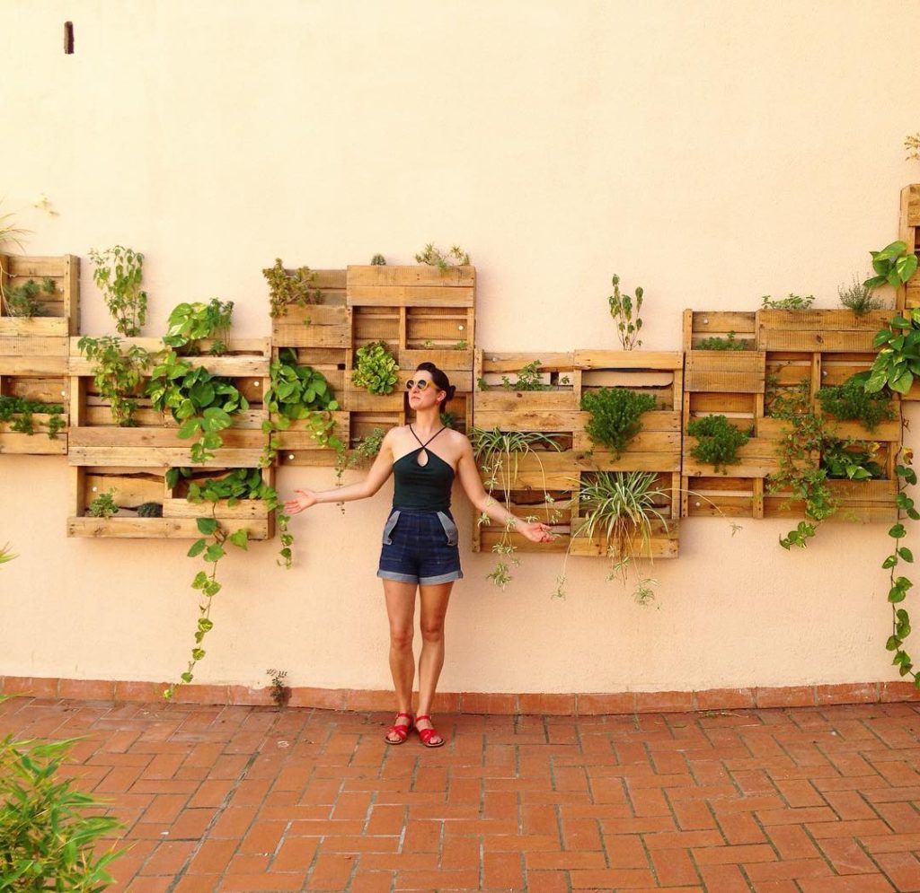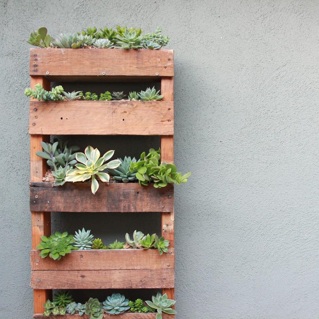 Placing the pallets against a wall helps stabilize the structure while turning the surface into a compact vertical garden.