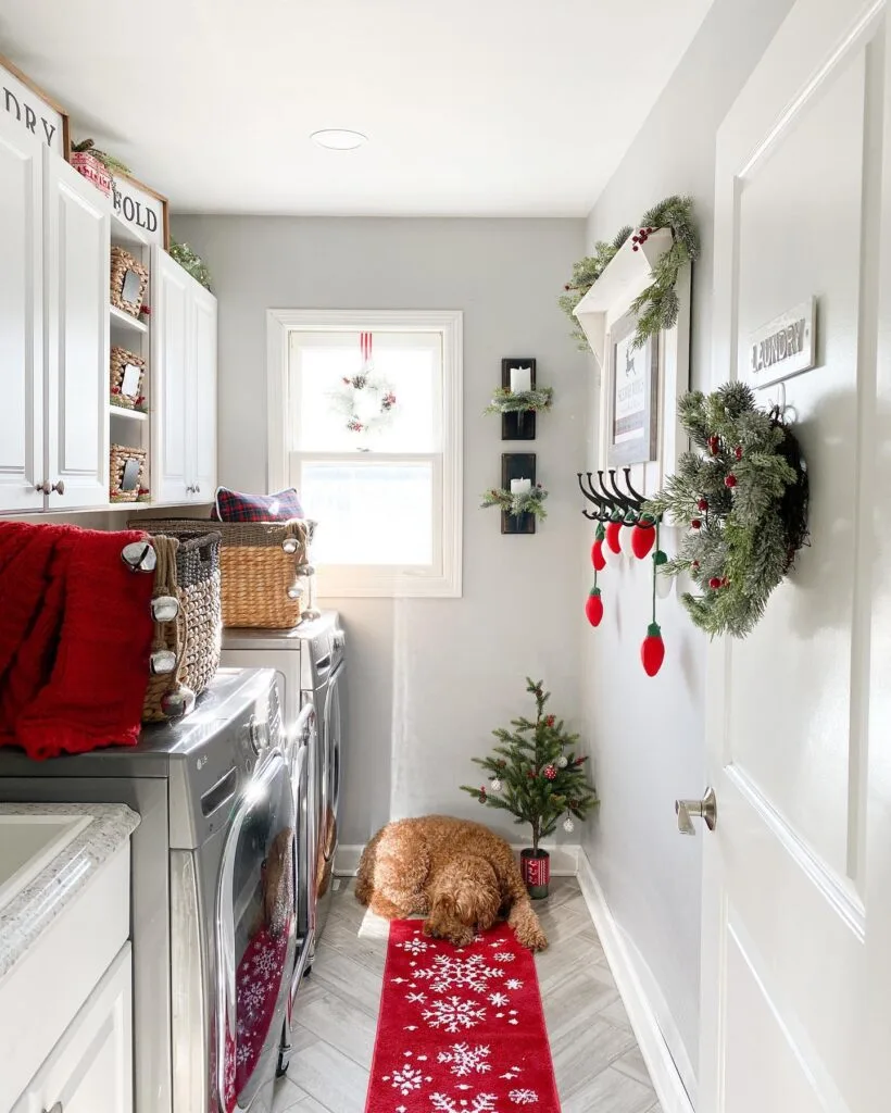Festive Laundry Room with Seasonal Cheer and Smart Storage